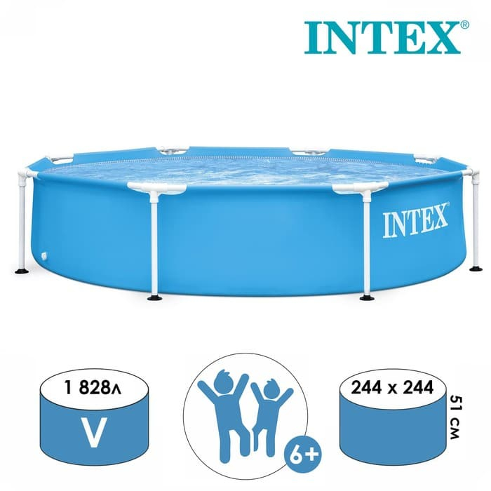 Каркасный бассейн Metal Frame размером 244x51 см. Прекрасно подходит детям от 6 лет.
